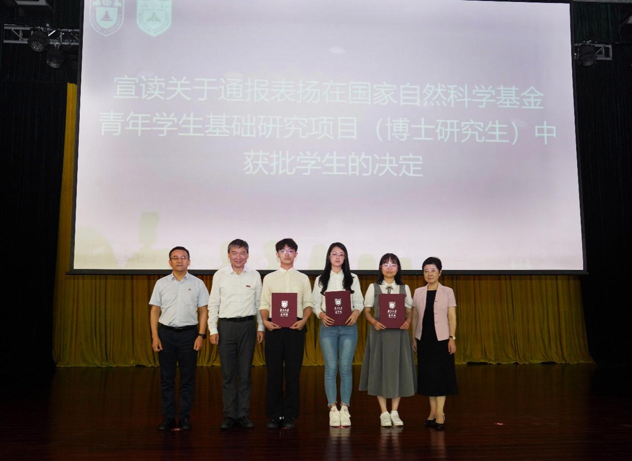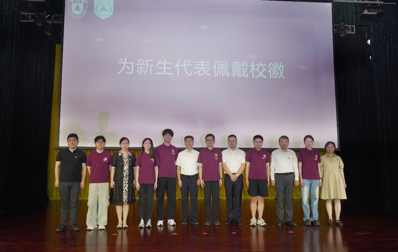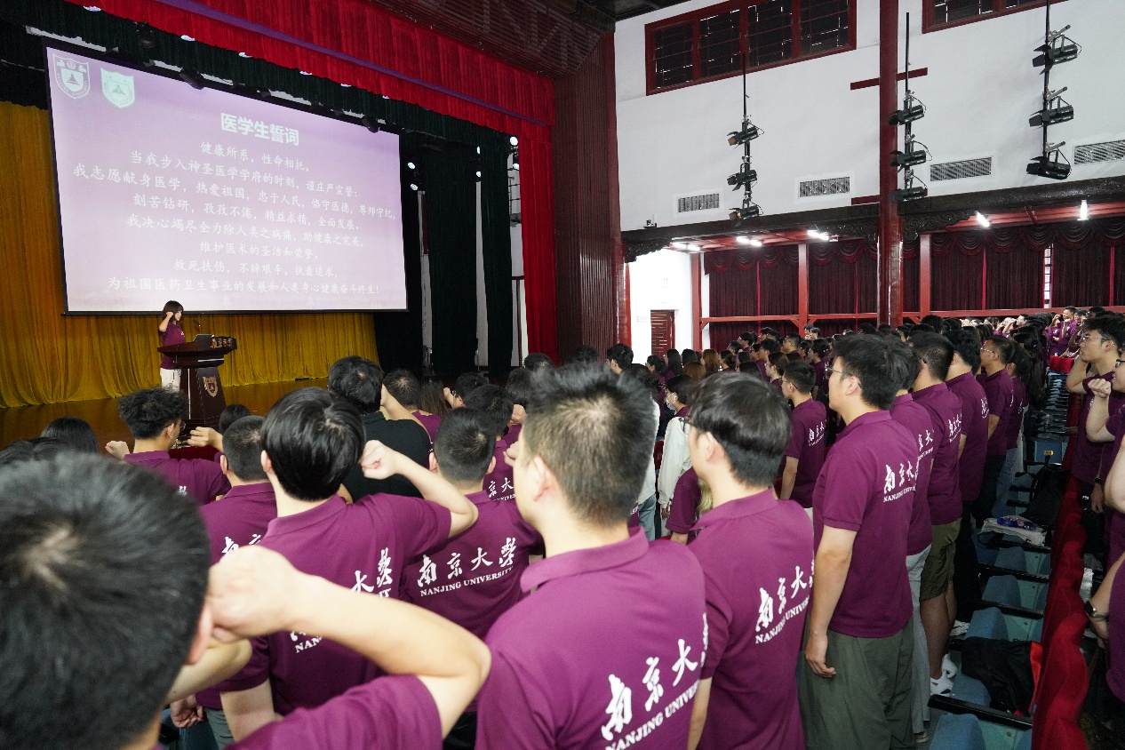 随后,与会领导和嘉宾为新生代表佩戴黄色网 校徽。王宏伟宣读了《关于通报表扬在国家自然科学基金青年学生基础研究项目(博士研究生)中获批学生的决定》。全体同学以热烈掌声向背后默默付出的全体教师致以教师节问候。2025级硕士研究生陈一丹带领全体新生庄严宣誓。誓言铿锵有力,展现了医学生的坚定信念和决心。