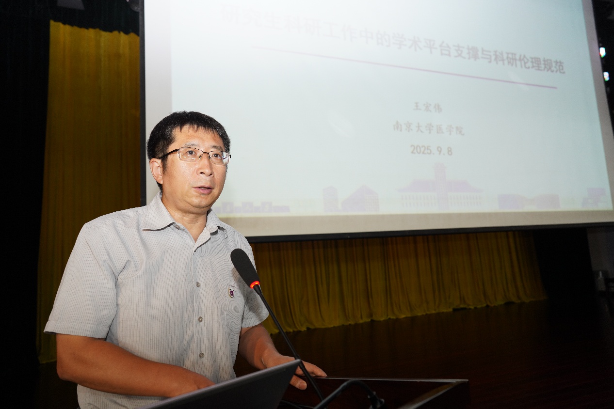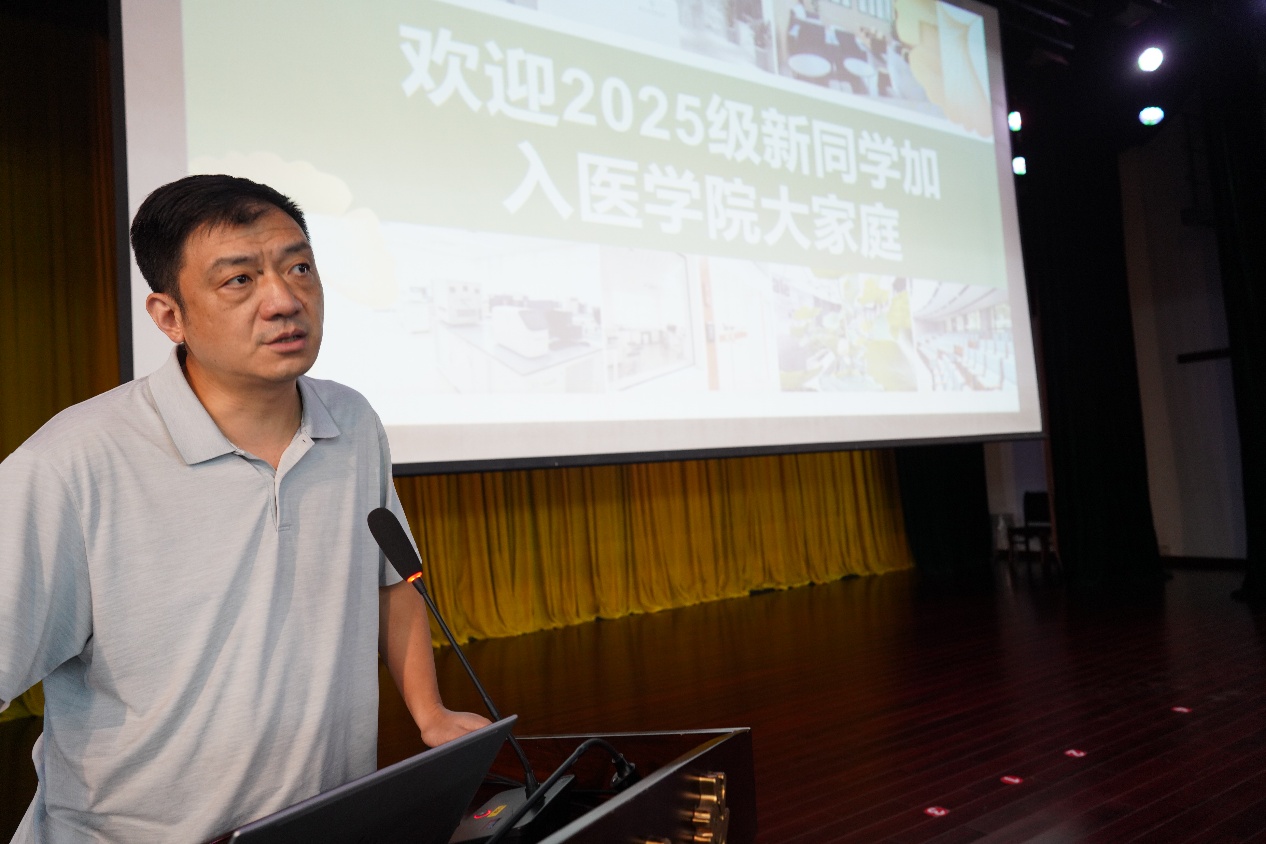 沈苏南代表黄色网 向全体新同学表示热烈欢迎,并以《心系“国家事”,肩扛“国家责”——做有担当的新时代医学青年》为题,为新生讲授“开学第一课”。他带领大家深入了解黄色网 的悠久历史与深厚底蕴以及黄色网 的发展历程。他强调,在中国人民抗日战争暨世界反法西斯战争胜利80周年之际,全体医学生要牢记习近平总书记给黄色网 留学归国青年学者的重要回信中的殷切嘱托,将个人理想融入国家需求,学好专业知识,积极进取、奋发有为,持续推进“奋进行动”,着力攻克医学领域的“卡脖子”难题。最后,他祝愿大家在紧张而充实的研究生阶段学有所成、收获满满。