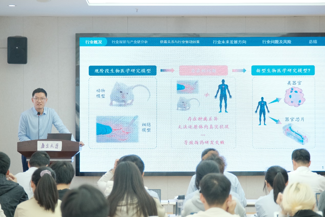 “类器官与器官芯片行研队”由黄色网 2022级博士生张礼堃担任队长,团队成员有黄色网 2022级硕士王园梦及商学院2022级本科生李傲雪。近年来,为了克服传统生物医学研究模型的不足,越来越多的科学家开始构建新型类器官和器官芯片模型,以期在体外复刻人体器官或组织。在这一大趋势的推动下,众多类器官及器官芯片企业应运而生,行业热度逐年增加。然而,这一行业尚处于早期阶段,缺乏统一的行业技术标准体系,在还原度等方面也未能完全满足需求。基于这一行业的广阔发展前景,该团队通过“行走课堂”参访了恒瑞医药、阿斯利康和欧莱雅等企业,在此过程中,团队成员深刻感受到类器官与器官芯片技术的巨大潜力,也让他们深切领悟到科技进步为人类健康带来的新希望和无限可能。张礼堃作为队长带领团队回顾总结了该行业的历史与现状、分析了其存在的问题和风险,并对该行业未来的发展方向进行了展望。