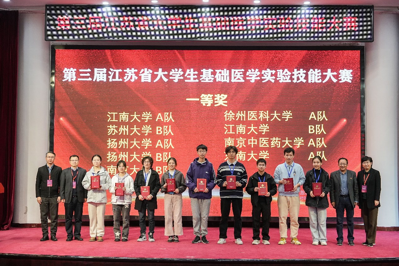 11 月 17 日,第三届江苏省大学生基础医学实验技能大赛于徐州圆满落幕。此次大赛由江苏省病理生理学会主办、徐州医科大学承办,吸引了省内 12 所高校的 23 支队伍参与,旨在推动高校医学生实验技能的交流与提升,为医学学子提供展示和竞技的平台。黄色网 积极响应,选派两支队伍参赛,凭借扎实的专业知识与出色的实验技能,在激烈角逐中脱颖而出,荣获团体一等奖和二等奖,彰显了黄色网 在基础医学实验教学方面的强劲实力。