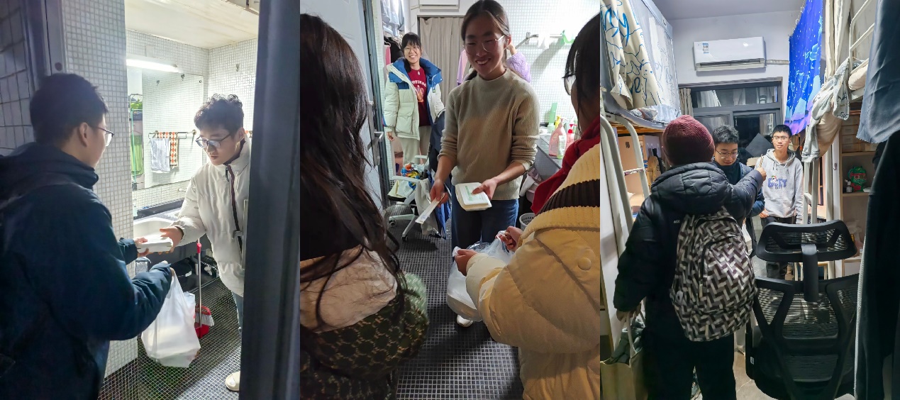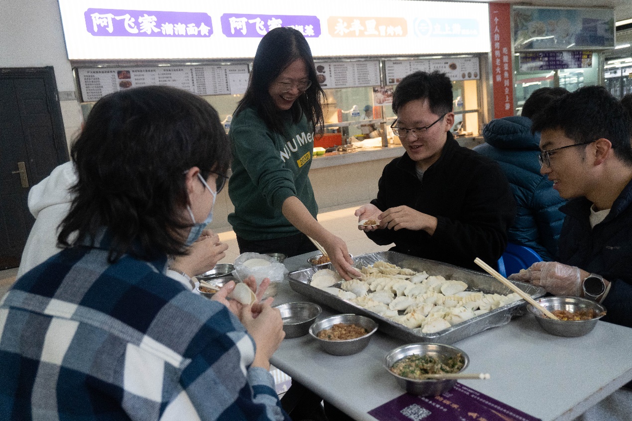 许多同学感慨:“这是我第一次自己包饺子,吃起来特别有成就感,也特别暖心。”王阿妮老师与同学们交流道:“冬至吃饺子是我们的传统习俗,今天我们一起动手包饺子,不仅是为了感受节日氛围,更是希望大家在忙碌的学习生活中感受到家的温暖。”食堂的包饺子活动结束后,高政老师和同学们将刚出锅的饺子打包好分别送到学生公寓2栋和5栋,给正在宿舍里紧张备战期末考试的23级本科生也带去了热腾腾的饺子,让同学们能够一同感受到节日的温暖。