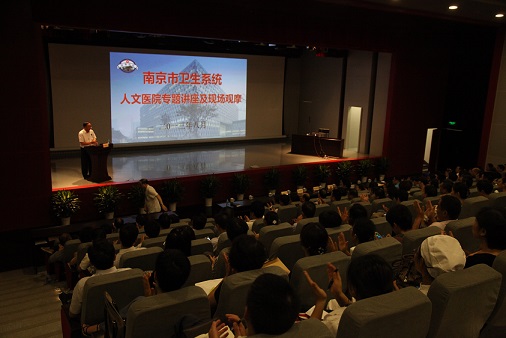 在两个小时的时间里,丁义涛院长密切结合医院实际,从人文医院的建设背景、创新公立医院改革模式、人才培养模式、人文医院管理模式等方面介绍了鼓楼医院近十年来在人文医院建设方面所取得的成效,分享了许多宝贵的经验。一张张珍贵的老照片、一串串鲜活的数据和一个个生动的事例,深入浅出,精彩纷呈的讲授,让与会者受益匪浅。讲座结束后,所有参会人员还分组参观了鼓楼医院历史纪念馆和新大楼,进行现场观摩。