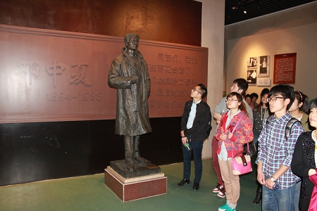 在讲解员的带领下,大家参观了烈士纪念馆内陈列的烈士遗物、珍贵图片、文献资料等。据统计,在雨花台约有10万名革命先烈为了民族的解放、新中国的建立抛头颅、撒热血,献出了宝贵的生命。在由2401位烈士姓名绣片和丝线、雨花石组成的“雨立方”场景前,在恽代英、邓中夏、孙津川、何宝珍、丁香等烈士的照片和生平事迹介绍展板前,大家不时停下脚步,凝神观看,为烈士们坚定的信念、英雄的壮举、崇高的精神而感到震撼。