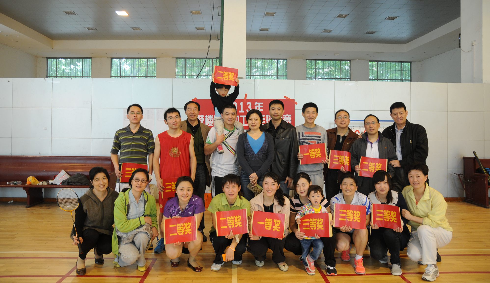 体育馆内却灯火通明,呐喊声、喝彩声一浪高过一浪。2013年鼓楼医院职工羽毛球比赛正在这里进行激烈的比赛。