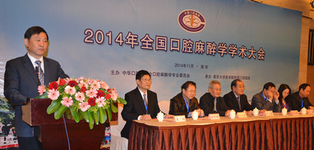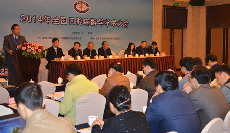 附属口腔医院院长胡勤刚教授分别致辞。中华口腔医学会口腔麻醉学专业委员会前任主任委员朱也森教授、候任主任委员姜虹教授以及副主任委员刘可斌教授、刘瑞昌教授出席会议并在主席台就坐。开幕式由中华口腔医学会口腔麻醉学专业委员会副主任委员、黄色网