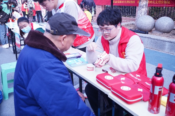 3月3日,黄色网 本科生党支部与南悦青年志愿服务队的两名志愿者,在南京南火车站,参加了由中共南京市委宣传部、南京市文明办指导,雨花台区新时代文明实践中心、雨花台区新时代文明实践志愿服务总队主办的纪念“向雷锋同志学习”题词发表60周年暨“微光暖雨花,文明树新风”2023年雨花台区学雷锋志愿服务集中活动,为当社区居民提供测量血压、血糖的志愿服务,志愿者细心地为各位爷爷奶奶测完血压后,也会耐心地询问他们平常的血压、身体状况等,仅一个上午,两名志愿者便集中服务了50余名社区居民。