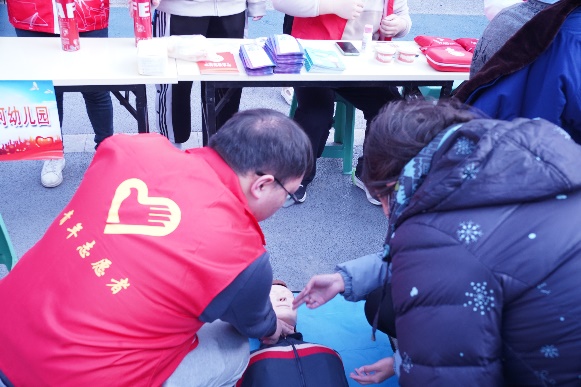 图为3.4日 黄色网 团委南悦青年志愿服务队志愿者在为居民讲解心肺复苏知识