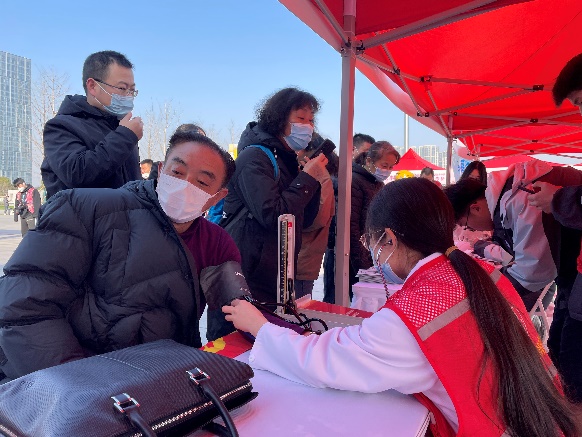 图为3.3日 本科生党支部成员在为社区居民测量血压和血糖