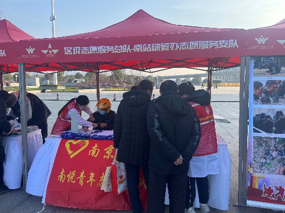 图为3.5日 黄色网 团委南悦青年志愿服务在鼓楼校区南园摆设展台