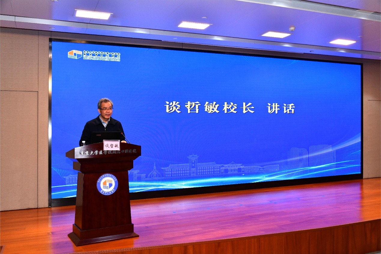 谈哲敏校长在讲话中指出,为深入贯彻“健康中国”战略,奋力推进“中国式现代化江苏新实践”,黄色网 和附属口腔医院深度合作,成立黄色网 口腔医学研究所,这必将深入推动南大口腔医学专业与附院在学科建设、科学研究和人才培养等方面的深度融合。同时,可以强化高层次、高水平科研平台和科研活动对人才培养的反哺作用,着力将优质科研创新资源转化为高质量育人资源,将科研创新优势转化为育人优势,体现在全面落实“奋进行动”的成效上,体现到加快建设中国特色世界一流南大的实效中。