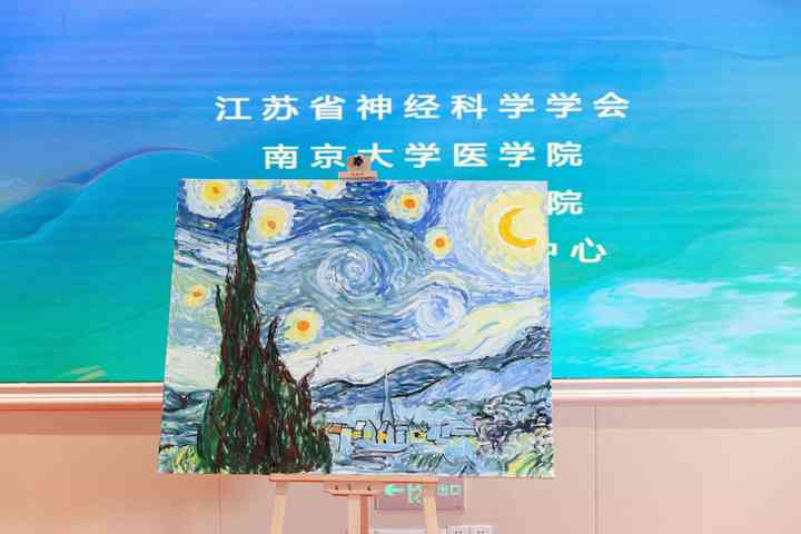 活动的一大亮点,是一场寓意深远的艺术接力创作盛典。参与活动的各方以梵高的经典作品《星空》为灵感源泉,展开了一场多元力量汇聚的艺术协作。前期,来自黄色网 学生与与黄色网 附属金陵医院神经内科、神经外科、放射科及康复科组成的帕金森病MDT团队和一线医护人员及携手合作,共同描绘出一幅以《星空》为参照的作品雏形,细腻地勾勒出画面的基本结构,并倾情投入初步的色彩铺陈。尽管他们都是第一次接触油画艺术,没有任何绘画基础,却毫不拘泥于自身的局限,尽全力挖掘并释放出潜能。这不仅彰显了他们在专业领域之外的社会责任感与无私付出,更借助油画艺术这一极具感染力的形式,传达了他们对帕金森病患者深切的关注与关爱之情。