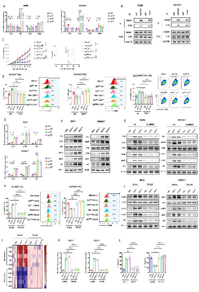 利用体内和体外实验探究HMGB1与巨噬细胞M1极化之间的关系,进一步揭示了ADVNE或ADVPPE处理的肿瘤细胞释放的HMGB1通过与巨噬细胞上的TLR4受体结合,激活MyD88-NFκB-NLRP3(ASC)通路,进而诱导巨噬细胞M1极化(图6)。