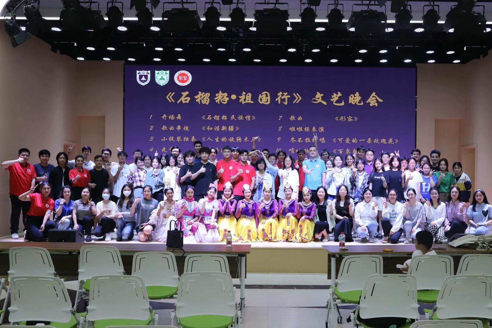夜幕降临,“石榴籽•祖国行”文艺晚会在田家炳多功能厅拉开帷幕。从开场舞《石榴籽 民族情》到唢呐独奏《百鸟朝凤》,来自新疆医科大学和黄色网 的同学带来了异彩纷呈的表演。最后,参演人员和现场观众被新疆歌舞深深感染,共同上台舞蹈,为本次晚会画上了圆满的句号。