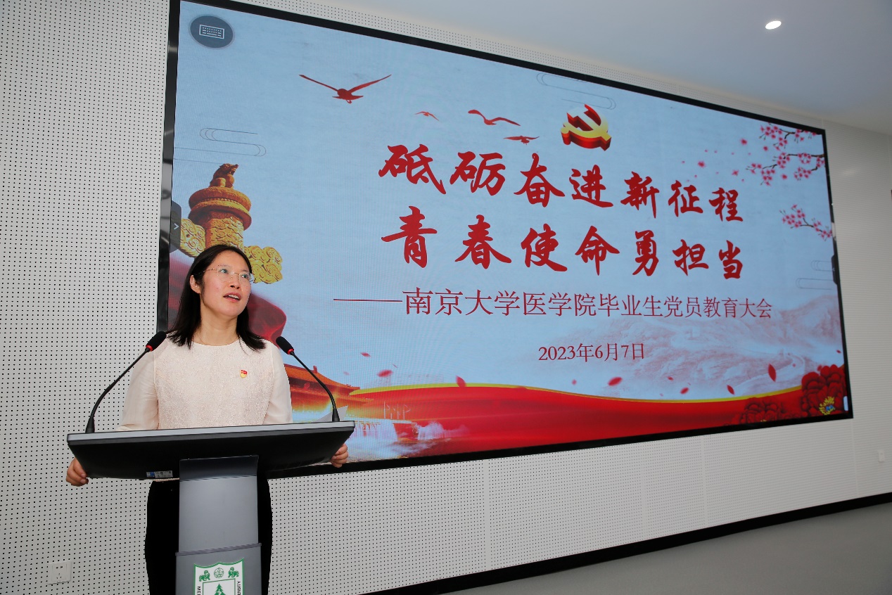 2020级博士第一党支部的王欣玥回顾了在黄色网 长达9年的学习经历,并对未来的工作生活做出展望。她表示,当今时代,医学知识的更迭不断加快,这对于毕业生们的能力素质提出了更高的要求,即使离开了校园,也要继续求真学问、练真本领,知行合一。生逢伟大时代,身为南大黄色网 的毕业党员,应当以李四光、程开甲等老一辈科学家为榜样,以报效国家、服务人民为自觉追求。