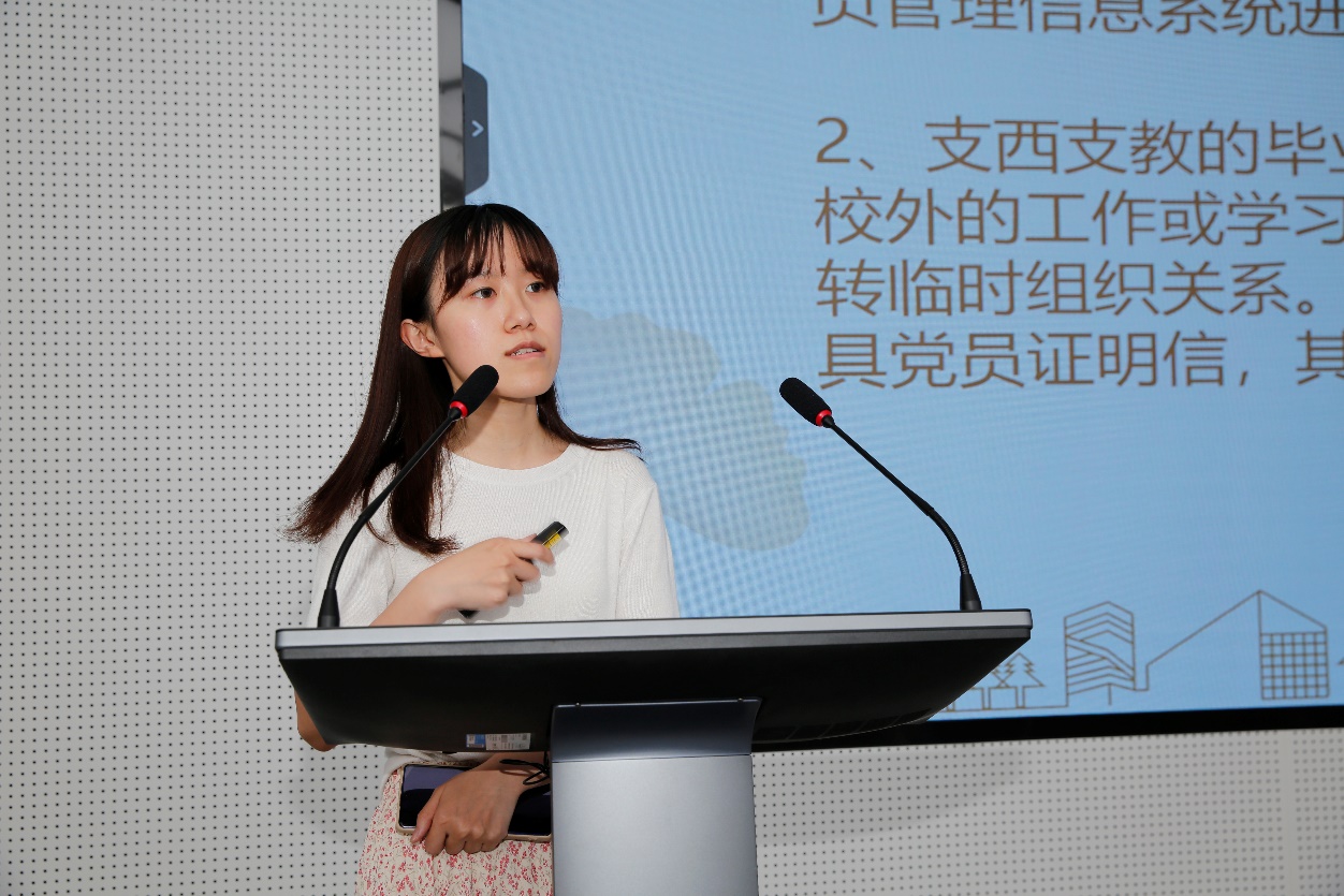 毕业生党员的组织关系转接工作是党员接受党组织的教育、管理和监督十分重要的环节,也是毕业生党员工作和基层党建工作中的重点之一。专职组织员张亦萱首先向各位毕业生党员介绍了组织关系转接工作安排,就分类做好转接登记工作、学生党员组织关系转出办理流程、正确填写黄色网 转出党员汇总表等方面对毕业生党员做出了说明。