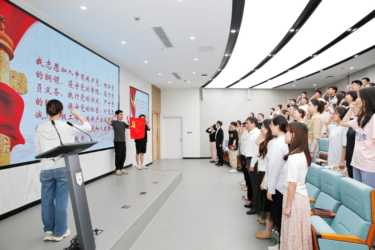 最后,在毕业生党员阚淑妍同学的带领下,全体党员共同重温入党誓词,坚定了为共产主义事业奋斗终身的理想和信念。