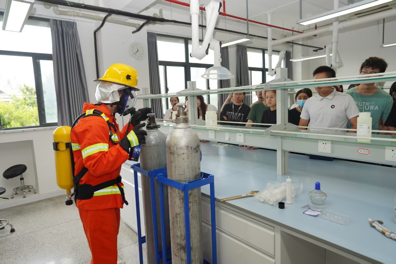 演练后期,安全专家结合实物展示与操作示范,详细讲解了正压式空气呼吸器、气体检测仪等防护装备的使用方法与注意事项,强调正确穿戴防护装备是保障救援人员安全的基础,并对现场师生进行了佩戴培训。同时深刻剖析了实验室内部不安全因素产生的原因和结果,通过典型事故案例,以真实事件敲响警钟,帮助师生深刻理解规范操作与应急处置的重要性,全面提升安全意识与应急能力。