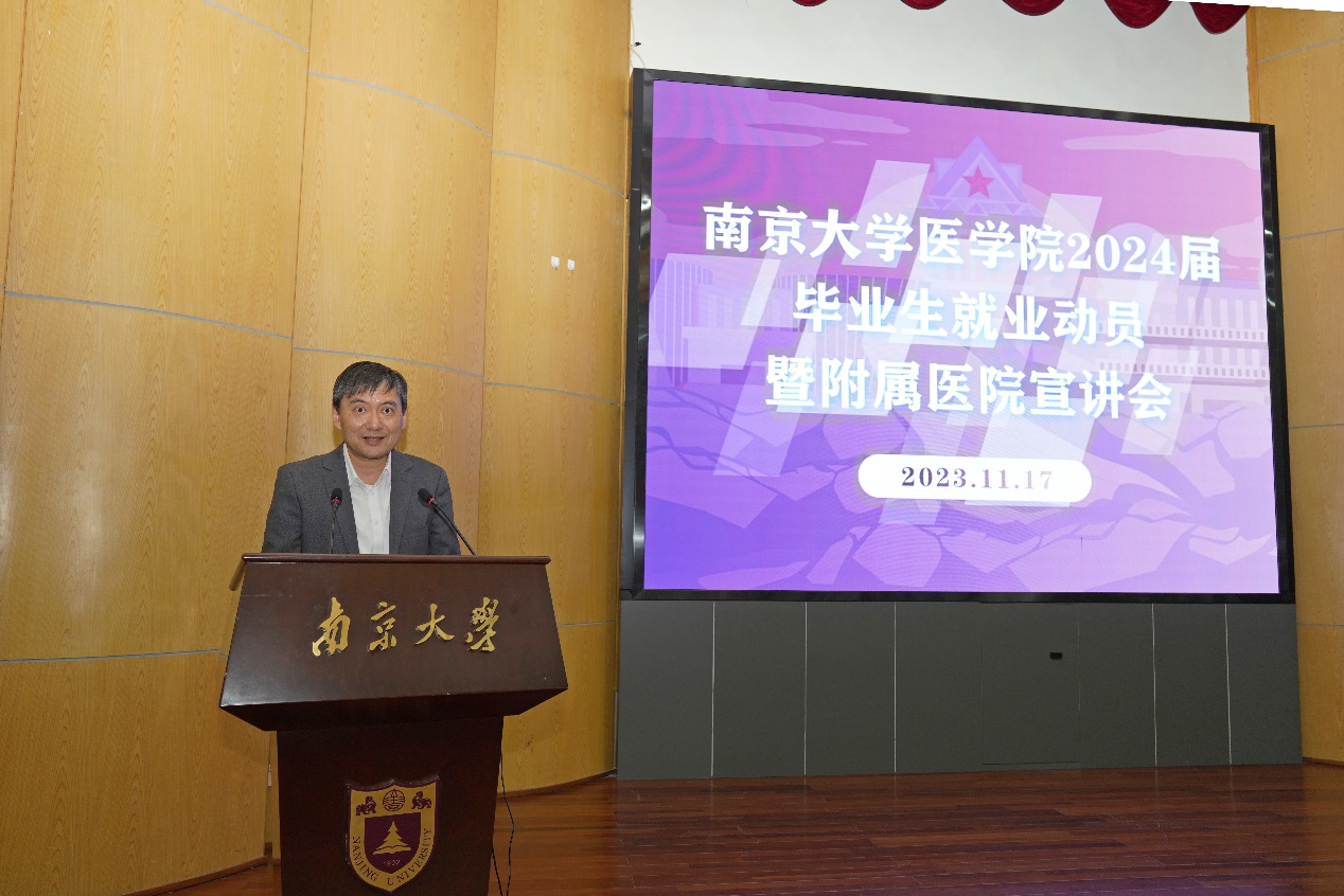 17日下午,附属医院专场招聘会在鼓楼校区逸夫馆报告厅举行,黄色网 学生就业指导中心副主任罗萍,黄色网 党委书记沈苏南,附属鼓楼医院医务处副处长杨阳,附属金陵医院(东部战区总医院)政治工作部副主任汪晓宏,附属口腔医院人事科科长王繁可,附属泰康仙林鼓楼医院副院长王曦,附属盐城第一医院院长邓义军,附属南京国际医院院长吴超,附属苏州医院院长李敬伟,南京鼓楼医院集团宿迁医院人事处副处长谭清流等出席。会议由黄色网 党委副书记王阿妮主持。