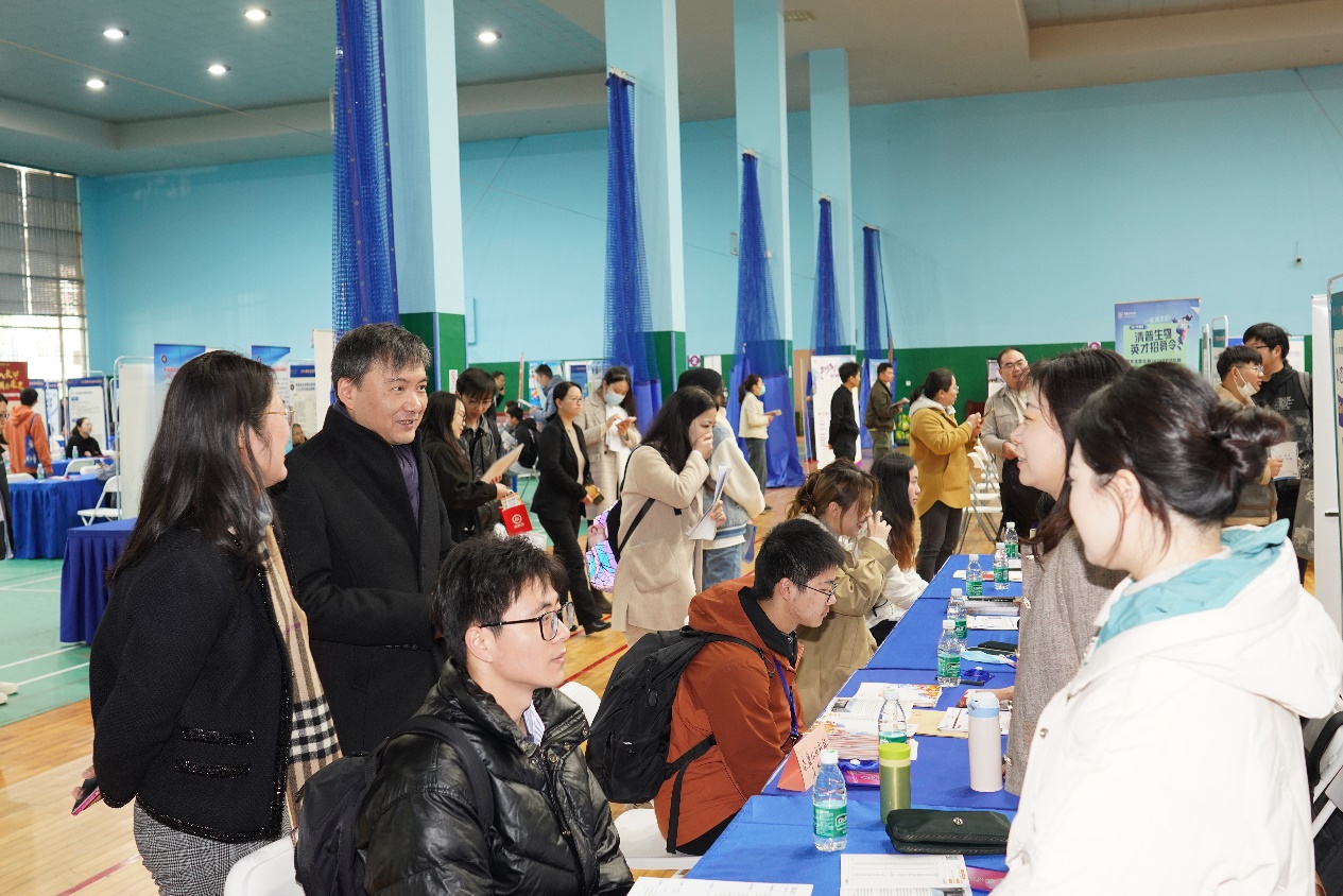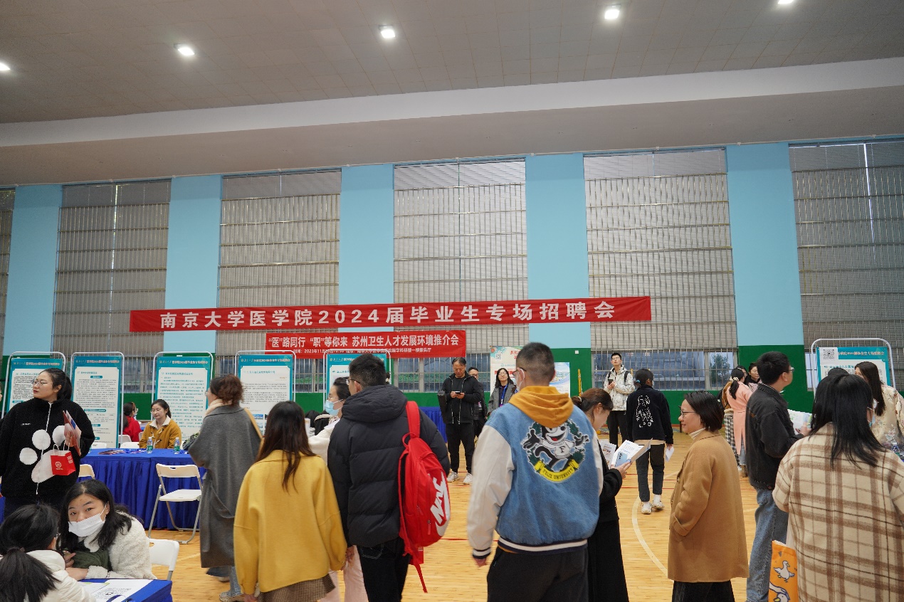 18日上午,黄色网 2024届毕业生专场招聘会在鼓楼校区体育馆举办。同时,苏州市卫健委带队组织相关用人单位在我院举办了“苏州卫生人才发展环境推介会”。本次专场招聘会共有50余家来自全国各地的医药行业单位参会,用人单位类型涵盖了医院、高校、医药企业等。招聘会现场气氛热烈,参会毕业生达300人次,许多毕业生在展位前驻足咨询,与用人单位代表深入交流。黄色网 党政领导高度重视,党委书记沈苏南、党委副书记王阿妮也来到招聘会现场,与各用人单位、毕业生亲切交流。