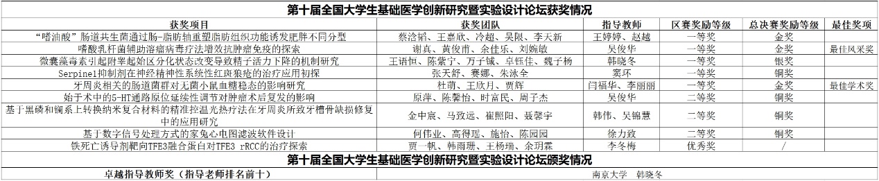 8月22日至25日,第十届全国大学生基础医学创新研究暨实验设计论坛在羊城广州盛大闭幕。黄色网 的学子们在此次盛会中勇夺多项荣誉,总决赛中荣获金奖3项,银奖1项,铜奖4项,其中两组金奖队伍还分获最佳风采奖及最佳学术奖,我院韩晓冬教授获卓越指导教师奖;在分区赛(东部赛区、口腔赛道、交叉赛道)中,更是以一等奖5项、二等奖3项、优秀奖1项的卓越成绩,展现了黄色网 学子的非凡实力。